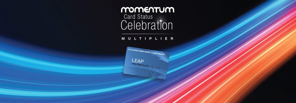 Must be 19 years of age or older to enter the casino gaming areas, have a valid Momentum card and government-issued photo identification to redeem offers and to participate in Fallsview Casino Resort and Casino Niagara promotions, contests and events. Momentum benefits are subject to availability. Membership is FREE. Terms and Conditions apply. Momentum cards are for the personal use of the individual who was issued the card. Momentum card and points are non-transferable. Individuals who are prohibited from attending Ontario gaming sites are not permitted to enter the properties or to participate in contests, promotions or tournaments. Momentum Dollars cannot be exchanged for currency and do not affect card status or level. Free Play prizes won as part of a promotion cannot be exchanged for currency, are not eligible for Status Points, do not impact card level and cannot be redeemed on select gaming devices. No purchase necessary. Void where prohibited by law. Promotion is open to Leap cardholders on select dates in April 2025. Momentum card must be inserted and read “accepted” for additional Momentum Dollars to be earned. If playing the slot machine prior to 11:00:01AM, Momentum card must be removed from the Slot Machine, reinserted and read “accepted” in order for additional Momentum Dollars to be earned. Table ratings must be closed before 2:59:59PM in order for Momentum Dollars to accrue. Poker is excluded from this promotion. Additional Momentum Dollars will not accrue if playing with Free Slot Play, Promotional Chips or previously earned Momentum Dollars. Management reserves the right to modify or cancel promotions, contests, events, rewards or benefits at any time. For full contest/promotion rules and details call 1.877.376.9722 or visit the Momentum Desk at Niagara Fallsview Casino Resort or Casino Niagara.
